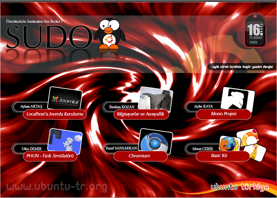 Derginin bu sayısı ve diğer tüm sayılarını http://sudo.ubuntu-tr.org adresinden indirebilirsiniz.